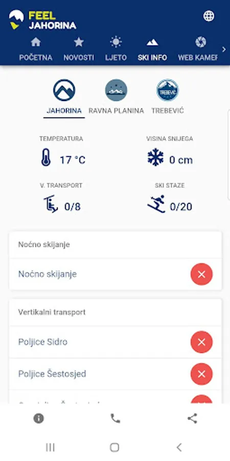 The information is updated daily in cooperation with the Olympic Center Jahorina, Ski Center Ravna Planina and Sports & Recreation Center Brus.