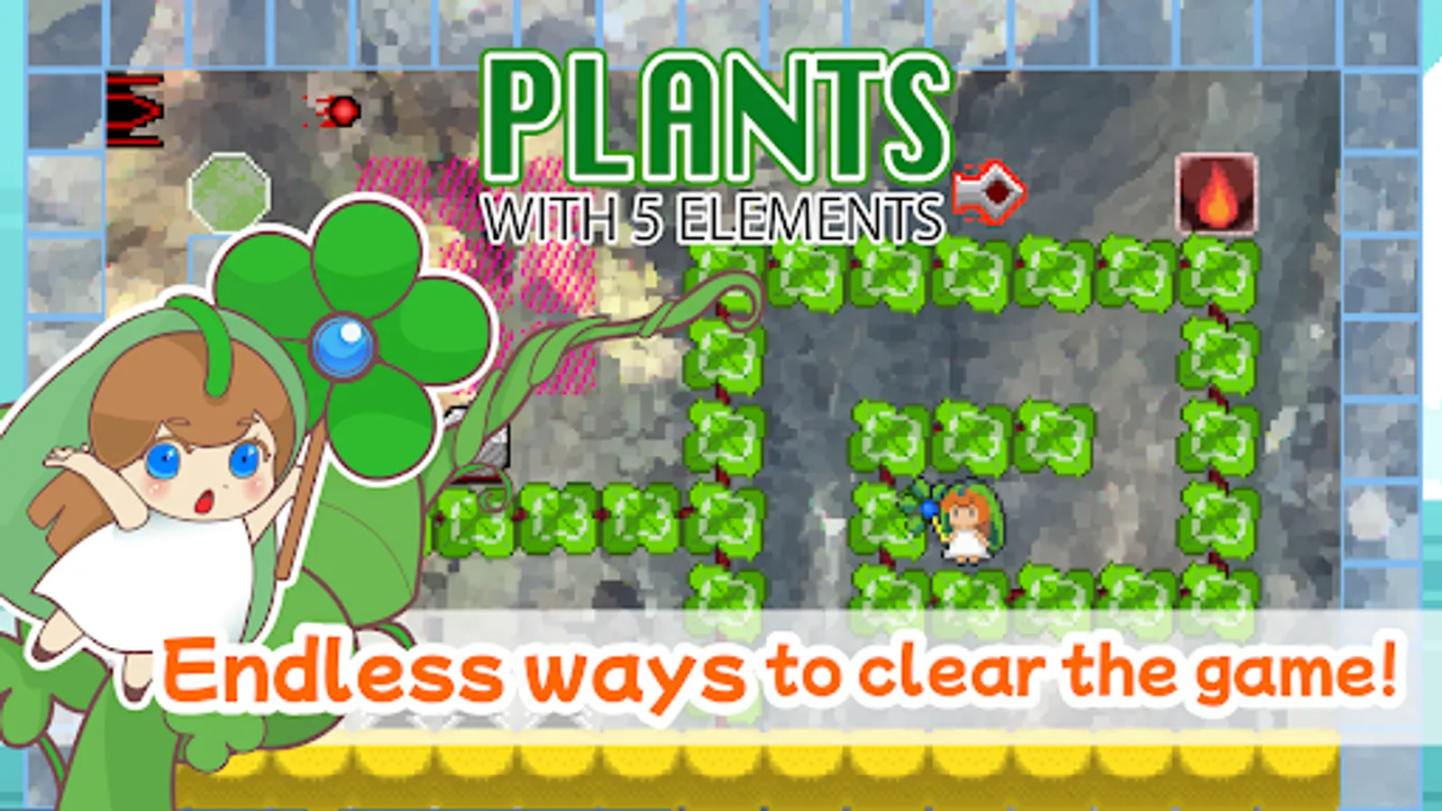 Explore an unknown world with fairies! "Plants with 5 elements" is an action-puzzle game where you control magical plants, fight mysterious mechanical creatures, and embark on an adventure. Retro pixel art visuals offer a nostalgic yet fresh gaming experience for both adults and children.