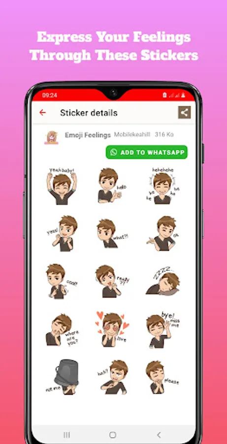 Enjoy these stickers and get ready to add some fun to your chats. Stickers Emoji Feelings app helps you to express your feelings and emotions better with these stickers.