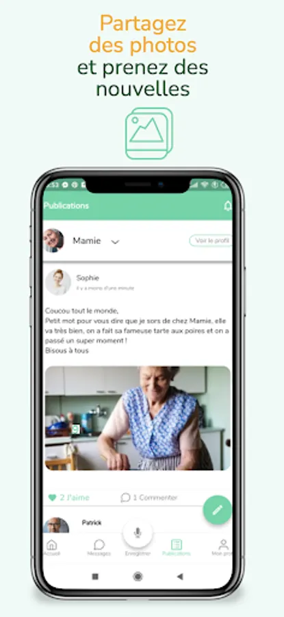 feelink is the first completely private family social network that allows your whole family to send news in the form of voice messages to a loved one who does not know how to use a smartphone.
