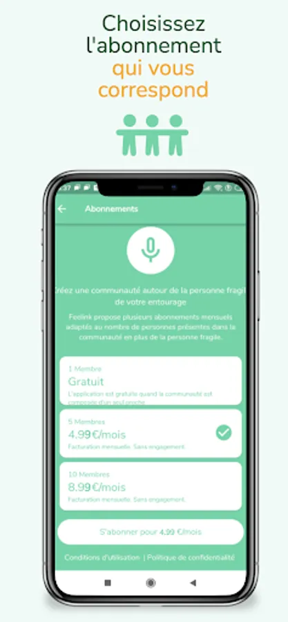Feelink offers several monthly subscriptions adapted to the number of people present in the community in addition to the fragile person.