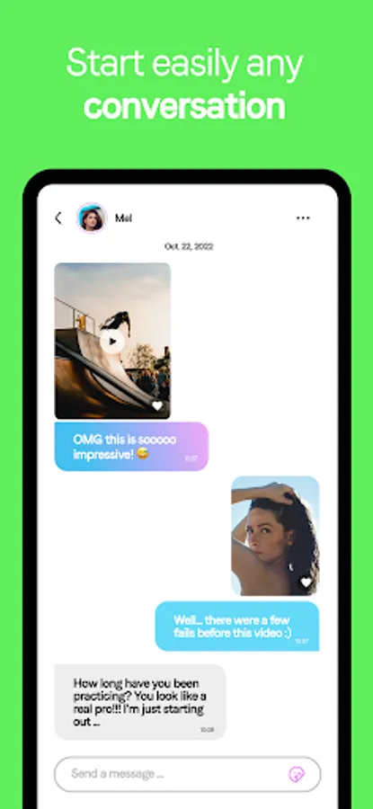 Meeting your next crush, a lover or your new friends should not happen through swiping boring profile pics, that forces to judge each other based on appearance alone. We believe connection starts with natural, positive and healthy interactions, this is why Feels is designed like a social network: you scroll through profiles that are made of lively stories where everyone can express their unique personality. And if you want to chat with someone, and maybe meet IRL, all you have to do is like one of their stories, and if they do too, the Good Vibes are there and you can then chat very simply and naturally... topics won't be lacking!