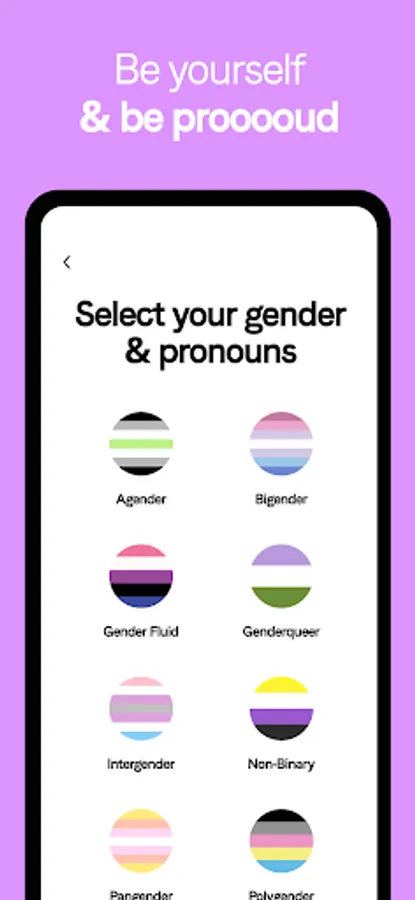 - Really be yourself with all the pronoun, gender and orientation options present on the app!
