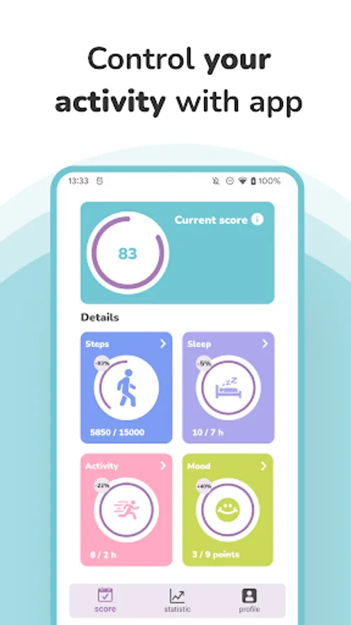 It's easy to improve your mental and physical health with FeelFine: everyday mood observation, parameters customizer, and your score data analyzer.
