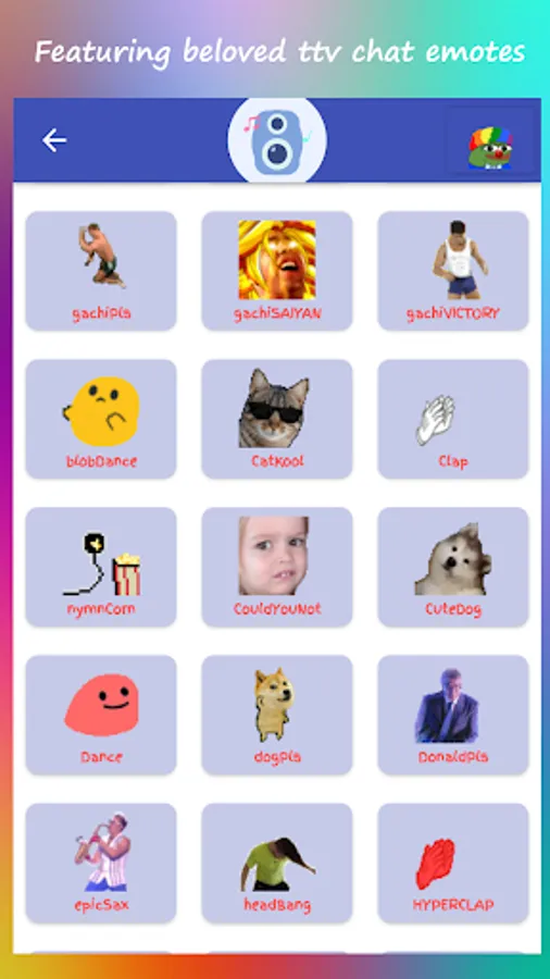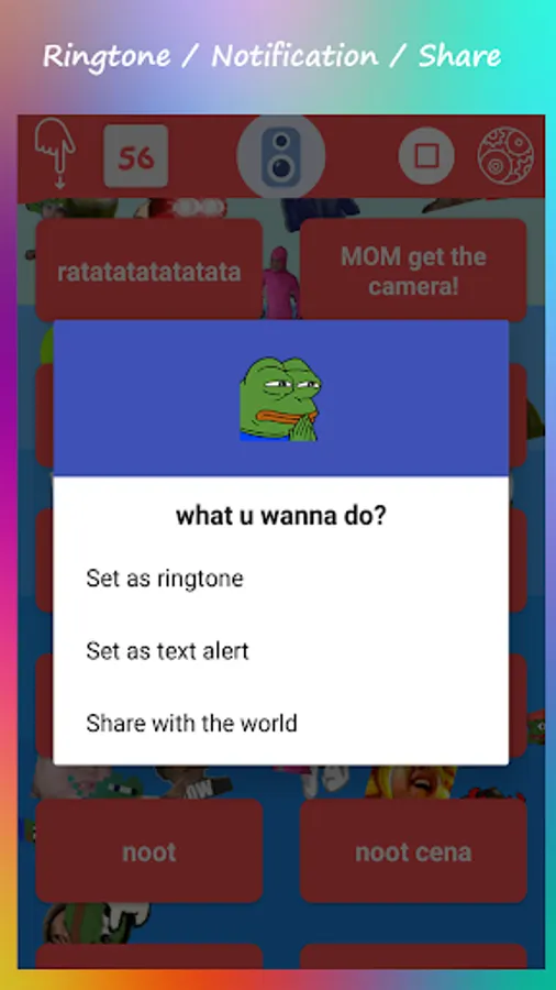 Set ringtone, text alert, share GIF emotes, add to favorites, search function and a whole lot of admiralC.