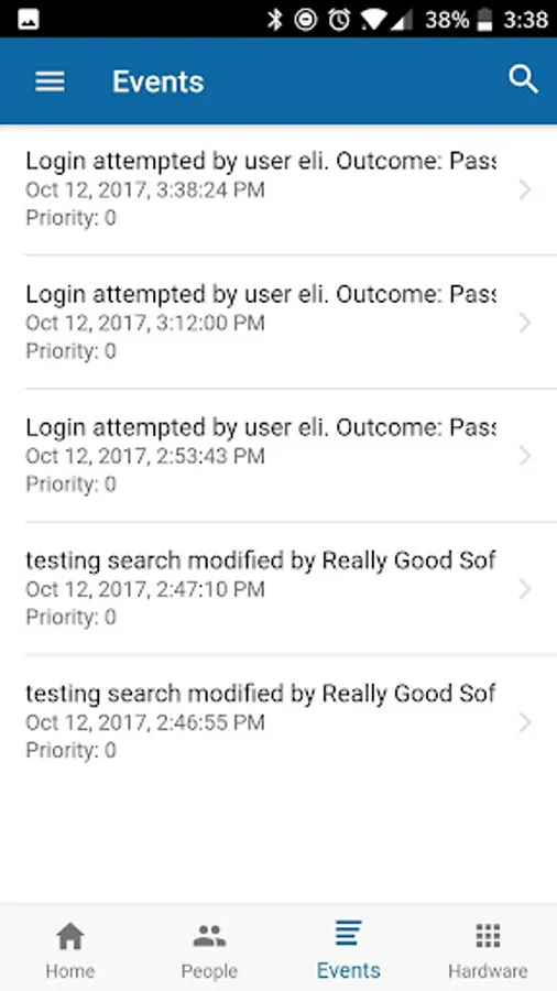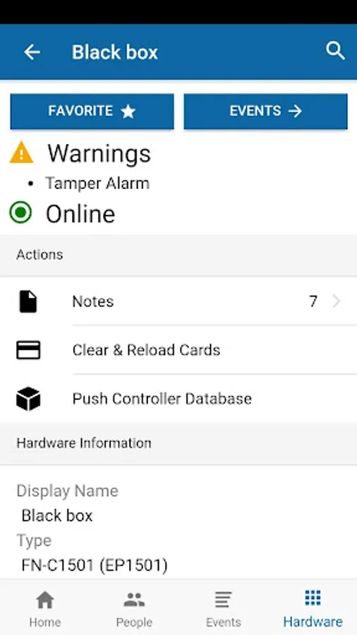 View events on your mobile device to see important events and logs that occurred. Make a person or hardware a favorite of yours to subscribe to events that occur on that hardware. You'll be notified when the event occurs with push notification. With Keep, you can always review the event history at any access point, drill into a specific event, review any special instructions attached to the event, and then add your own acknowledgements, including attaching a photo using your device camera.