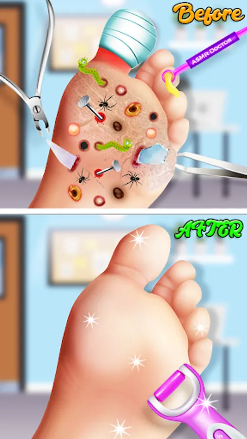 Welcome to the ultimate ASMR foot care game! In this relaxing and stress-relieving game, you can experience the thrill of being a foot doctor and pedicure expert. Whether you want to treat foot injuries or give your patient a relaxing foot massage, this game has it all.