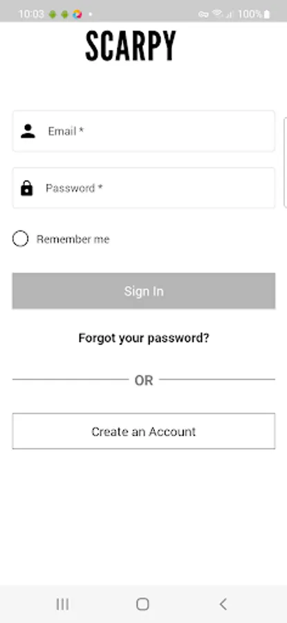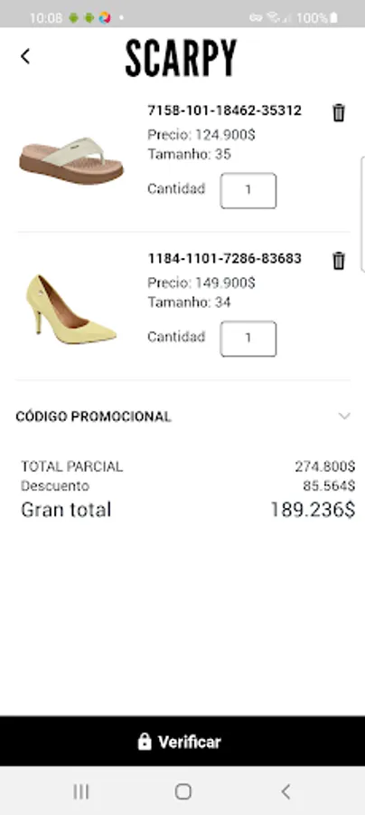 Aplicación de venta de zapatos para representantes de Scarpy Colombia