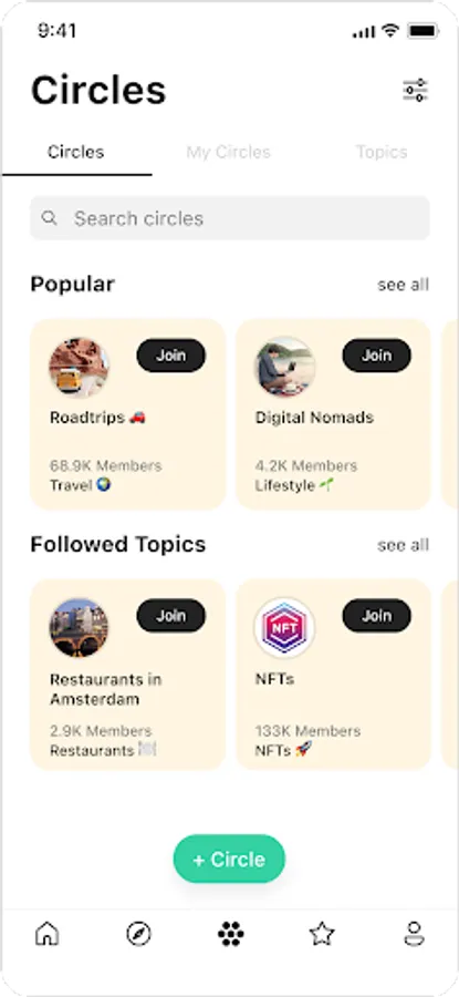 - Create and discover Circles; engaging topic related discussion groups on FEEV.