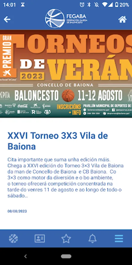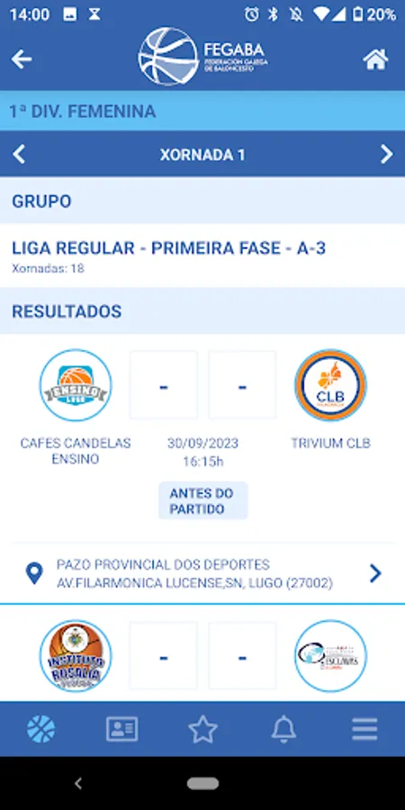 With this application you can consult the calendars, schedules and matches; access and receive directly the novas of the Galician Basketball Federation, divided by categories and personally classifying them as non-device favorites; Escoller limes are thus your informative preferences and a long etc.