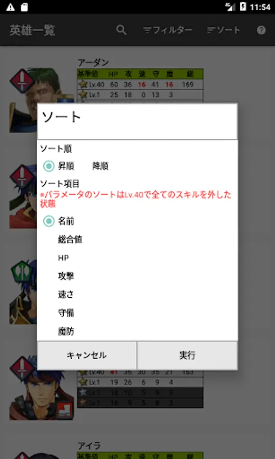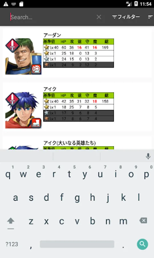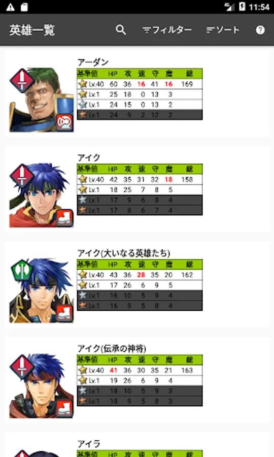 FEH(ファイアーエムブレムヒーローズ)のキャラクターのステータスを一覧できます。
