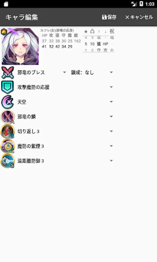 一覧画面ではレアリティ5のキャラクターがレベル40のときにどんなステータスになるのかが分かります。