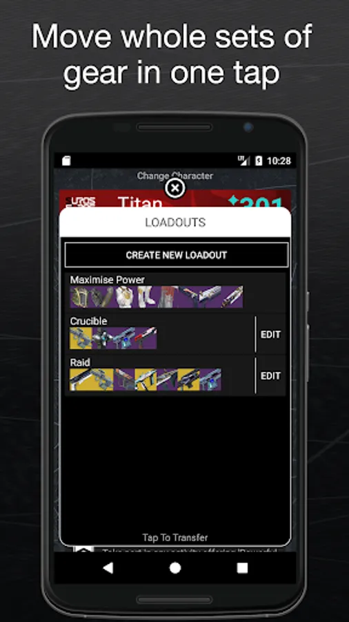 10, Quickly transfer and equip whole collections of gear with one tap using the Loadouts feature.