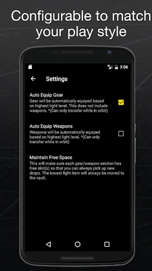 3, The App will make sure you always have spare slots to pick up new gear.