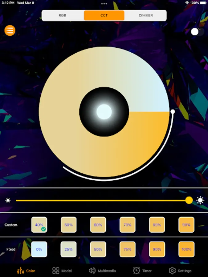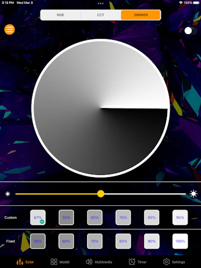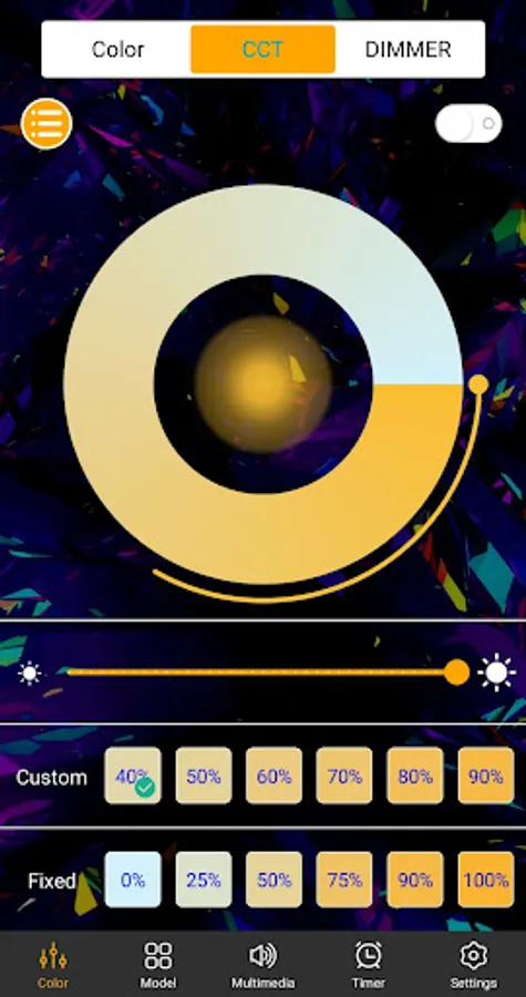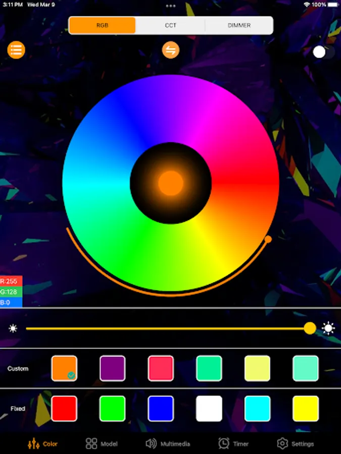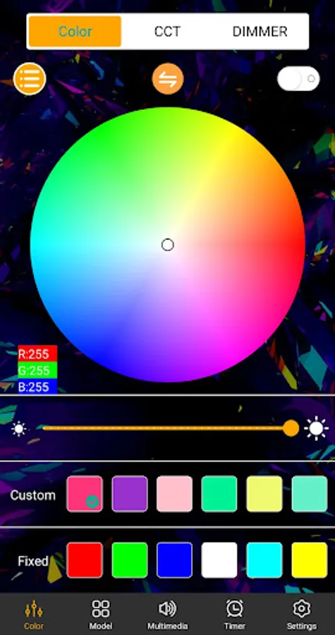 Fancyland is a LED Smart Bluetooth control software.it supports RGB,RGBW,CCT and Dimming Bluetooth devices control.It has Mode function,color control,CCT control, music control, microphone control and device microphone control.