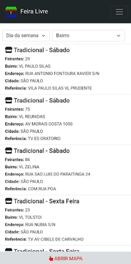 This application brings together the address of more than 900 fairs released by the São Paulo City Hall.