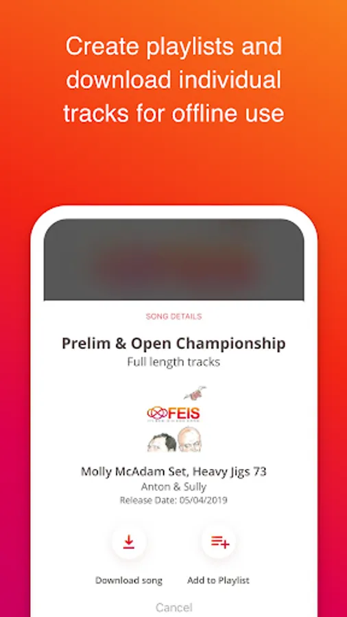 Create your own playlists, download tracks for use offline and customize the FEIS app to match your Irish dance organization and region...