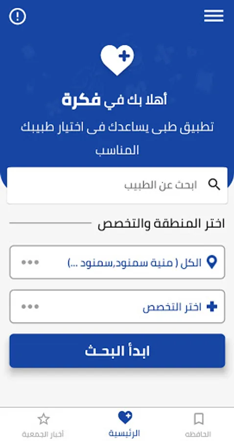 متاح فيه امكانية البحث عن طبيب بالاسم وأيضا البحث بالمنطقة وبالتخصص