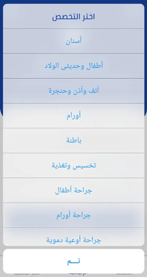 جلدية- عيون- أسنان- عظام- باطنة- أورام- أنف وأذن وحنجرة- جهاز هضمى ومناظير- أطفال وحديثى الولادة- قلب وأوعية دموية- صدر وجهاز تنفسى- مسالك بولية- مخ وأعصاب- نساء وتوليد- ذكورة وعقم- تخسيس وتغذية- غدد صماء- روماتيزم- نطق وتخاطب- علاج طبيعى واصابات ملاعب- نفسى- جراحة أطفال- جراحة أورام- جراحة أوعية دموية- جراحة تجميل- جراحة سمنة ومناظير- جراحة عامة- جراحة عمود فقرى- جراحة قلب وصدر- جراحة مخ وأعصاب