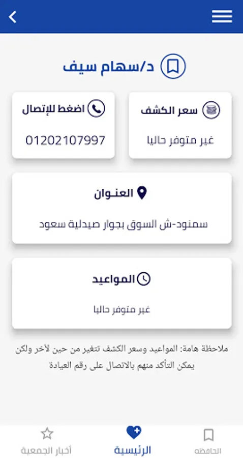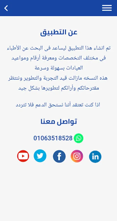 يوفر بيانات التواصل وتخصصات الأطباء من اجل تسهيل عميلة الحجز والاستفسارات