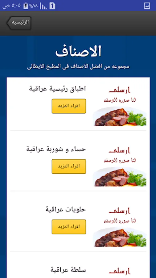 This app contains popular dishes in Iraq.