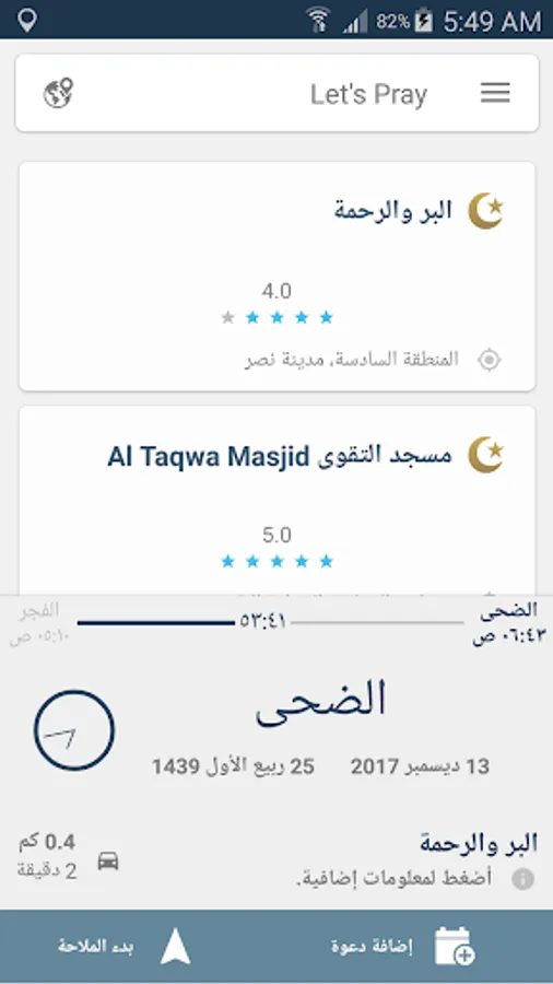 -استعراض بيانات المسجد وتققيمات المستخدمين الآخرين