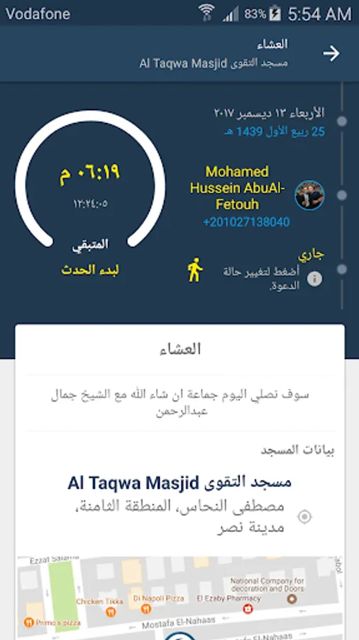 -معلومات تفصيلية أكثر عن المسجد (مواعيد الإقامة- صلاة الجمعة...)