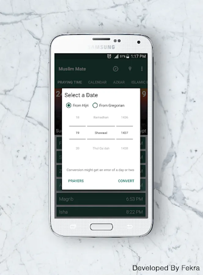 - Hijri and Gregorian calendar, you can check praying time in any future or past date.