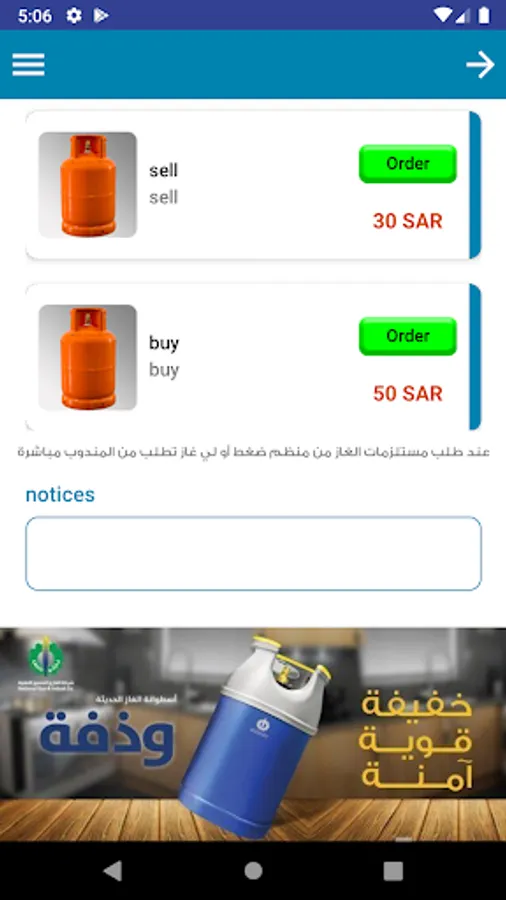 Mishwar Gas application for gas cylinders ordering and delivery services