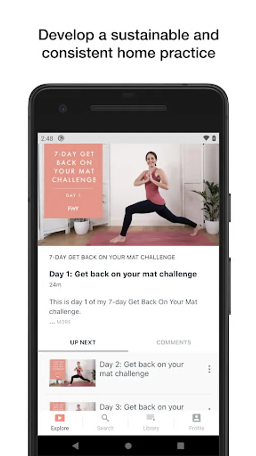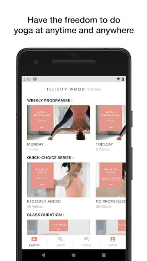 You’ll have the freedom to practise at any time, wherever you are, viewing via your phone or tablet and you can even beam the videos to your TV. You can download classes to the app for offline viewing, and you can save your favourite classes for easy access.