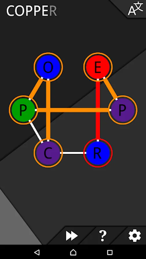 Word search puzzle game. Drag a path through the network to form a word using all nodes.