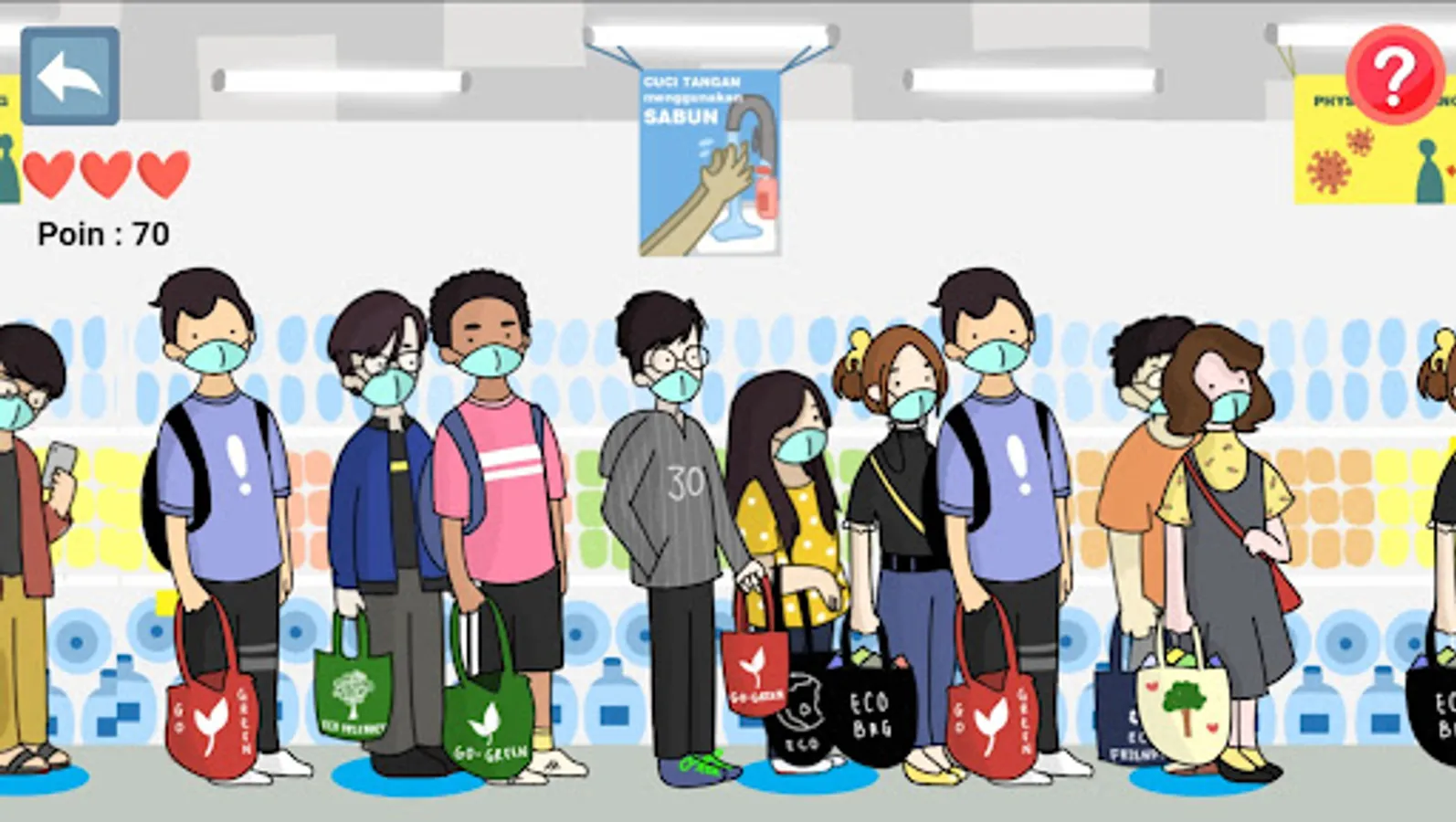 In this time of the COVID-19 pandemic, we must work together to break the chain of the spread of the virus. One of our efforts to prevent the spread of the virus is to implement the 5M health protocol, namely wearing masks, washing hands, maintaining distance, staying away from crowds, and limiting mobility. In this New Normal game, you will play and learn how to apply health protocols in the new normal era with Marie and Mario.