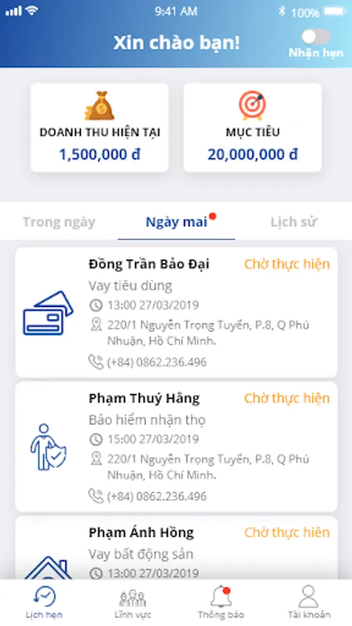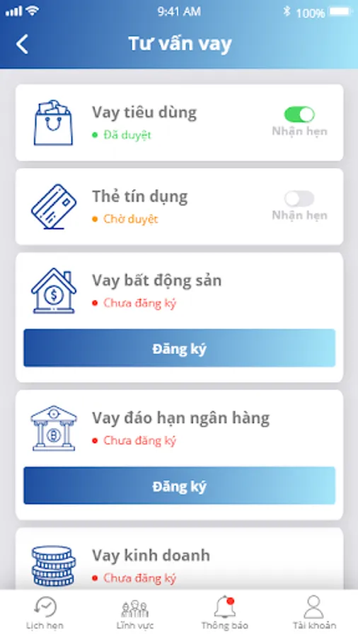Consulting, brokerage of financial services products (Borrowing cards, Credit cards, ... Consumer loans, Mortgages, Mortgages, Bank maturity, ...), securities, financial investment main, settlement, study abroad, tourism, open fund, ...; Collect and hand over and receive documents and vouchers for finance, banking, ...; Connecting customers (clients) and agents (Agent).