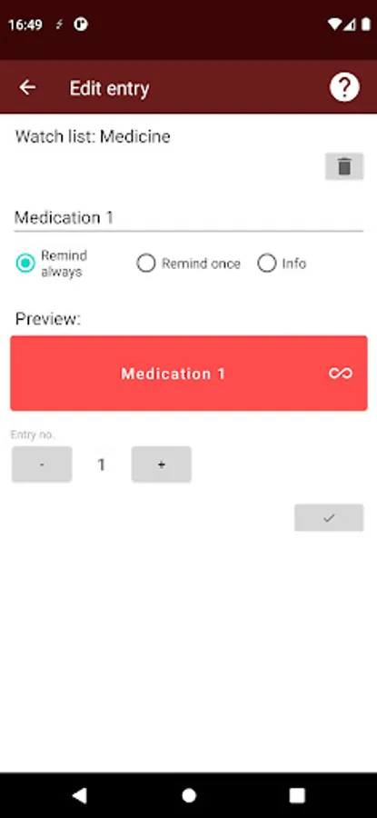 The app also features an automatic time-based reminder function, which can be configured to remind you at certain points in time of recurring tasks, like taking medicine.