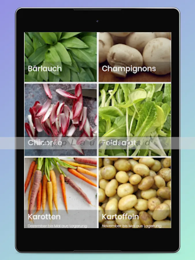 In this app you will find a seasonal calendar with an overview of which fruits and vegetables are currently available regionally and seasonally.