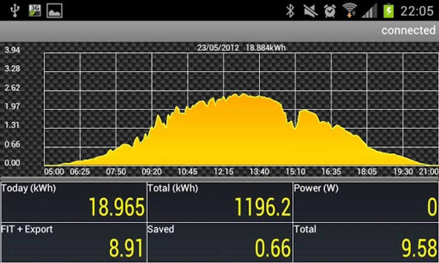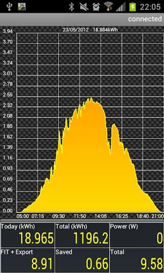 Daily graph updated whilst connected to the inverter.
