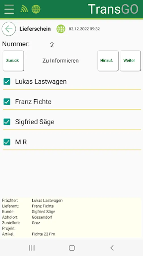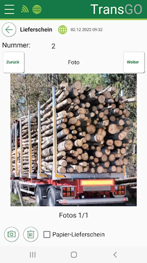 The app generates a PDF delivery over the dissipated amount and it can be sent to the desired address from the address book. The delivery includes also the exact loading and the accompanying photos side information, such as supplier, customer, pick-up location, delivery, quantity and assortment.