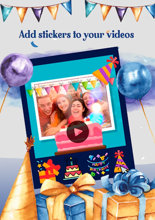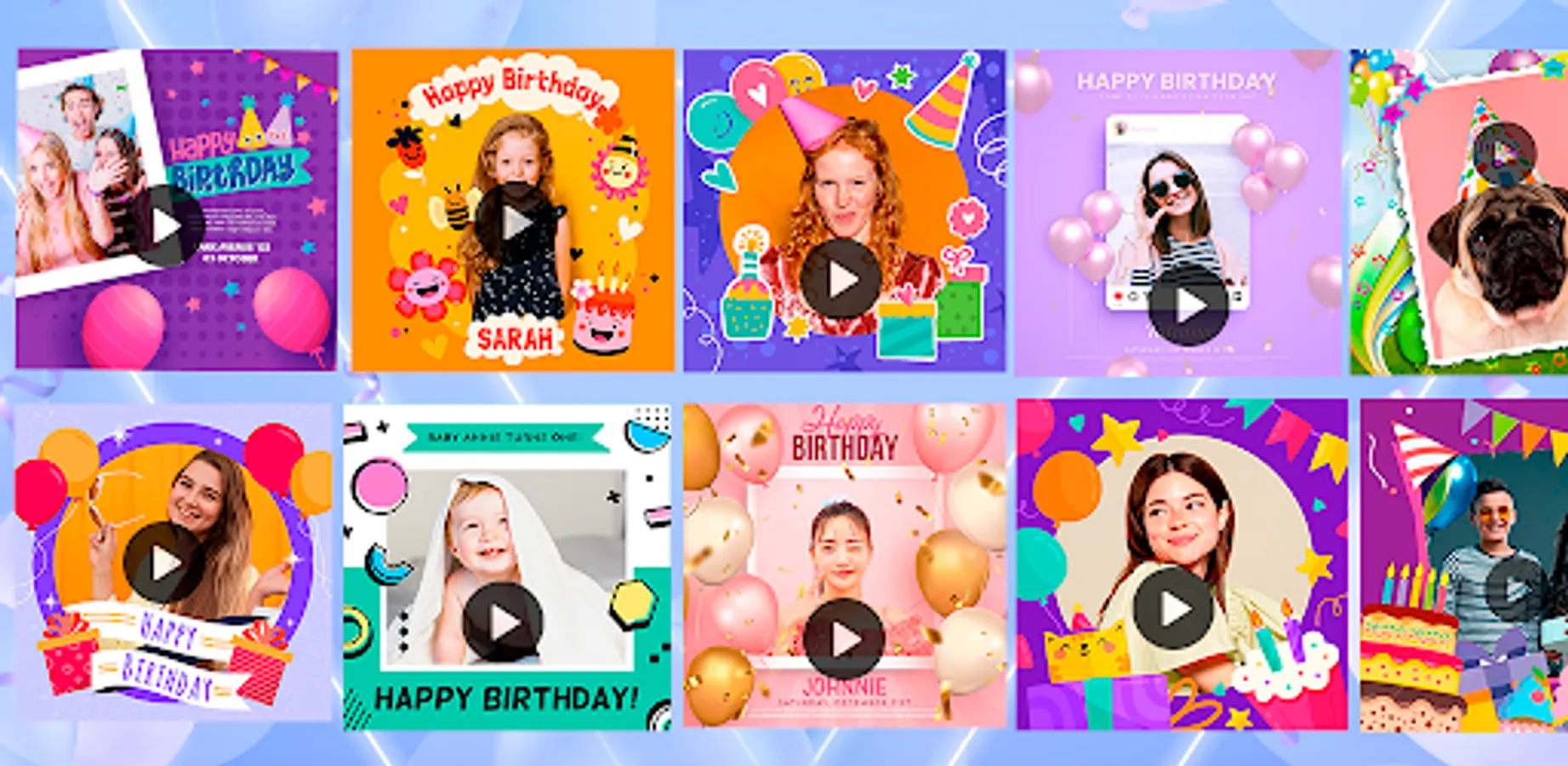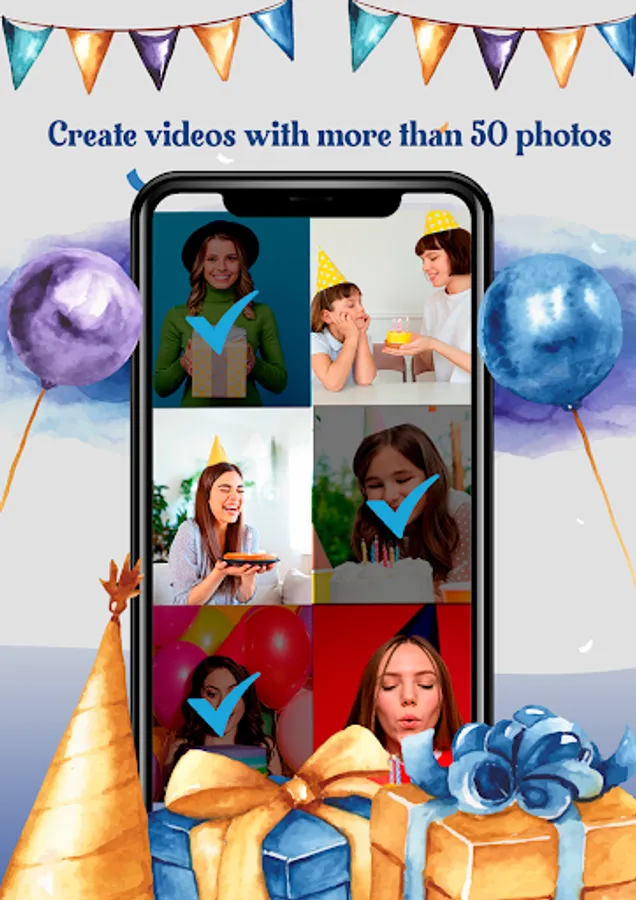 With this app you can create birthday videos with photos and music, add more than 60 photos and edit by adding stickers and texts.