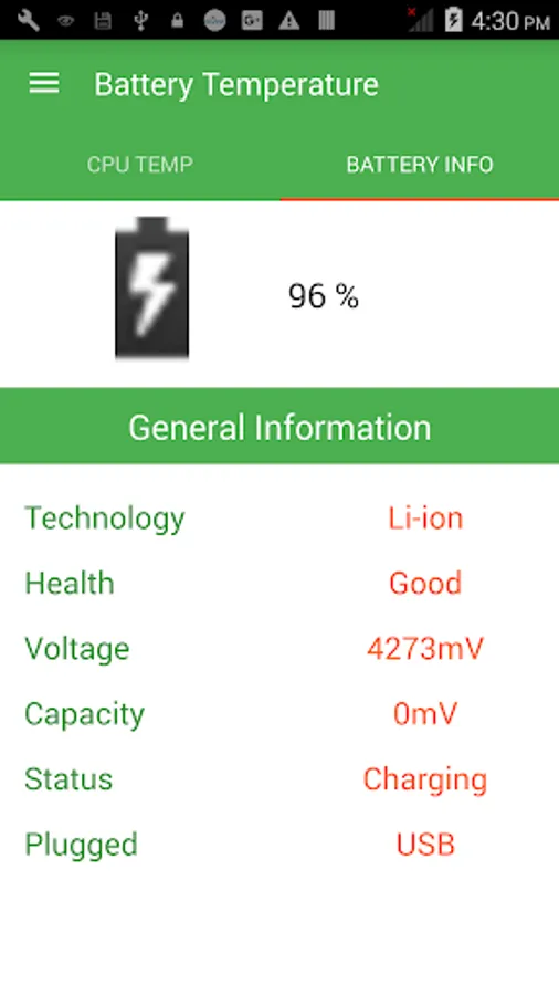 Battery Temperature app show your device and battery temperature in degree and Fahrenheit. Along with usefull information about your battery.