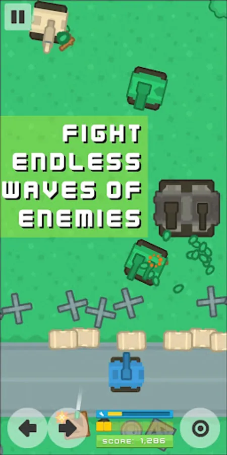 Destroy endless waves of evil enemy tanks. They deserve it, for reasons. Dodge their fire and kill them all. Really, they deserve it. Believe us. That's a command!