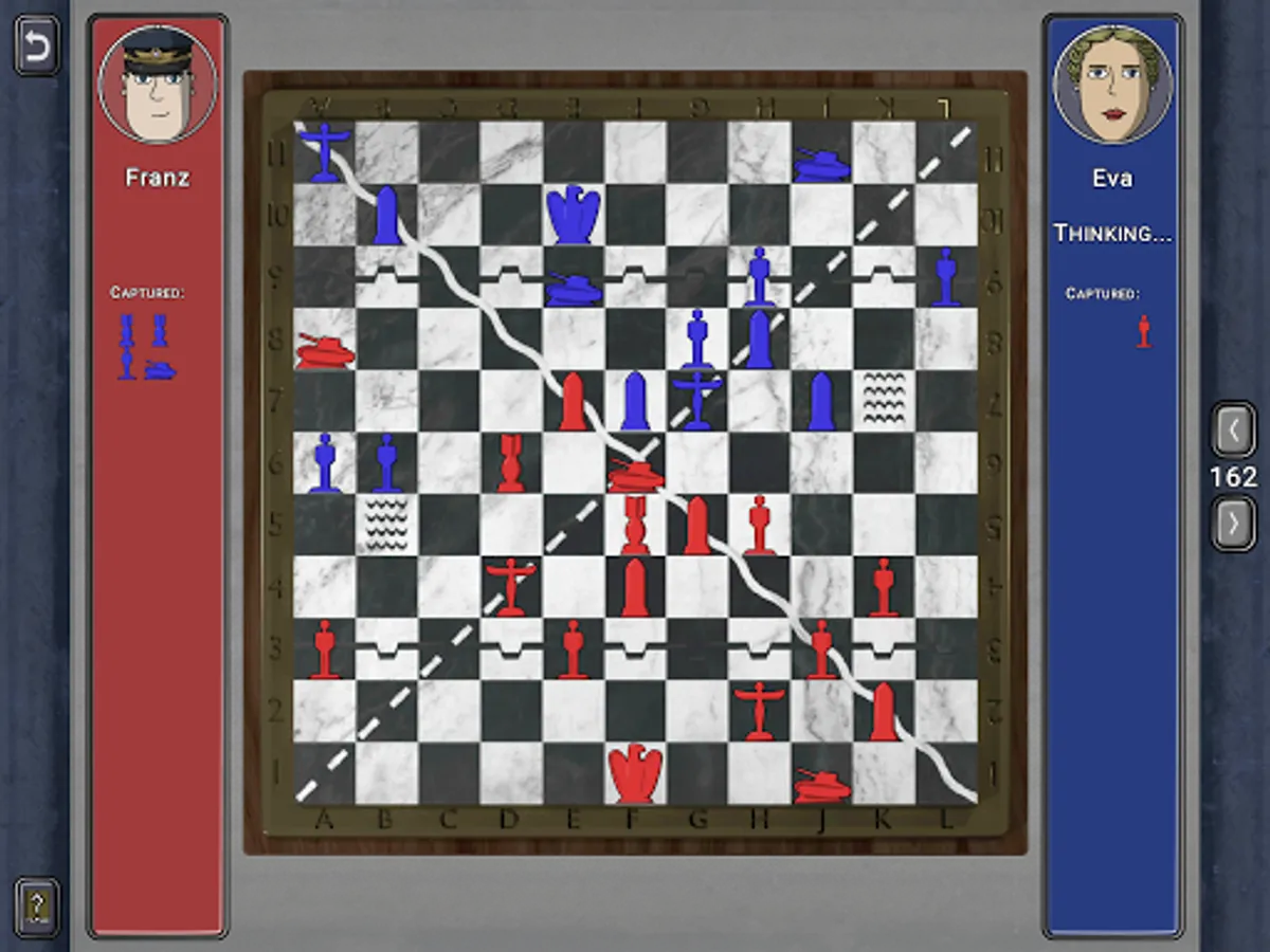 Played on a 11x11 squares board with 18 pieces of 5 different types each war party strives to fulfill one of the various goals to win the battle. Will you aim to destroy the enemy infantry or to conquer their main base? Adopt your play to the strategy of your enemy and crush him.