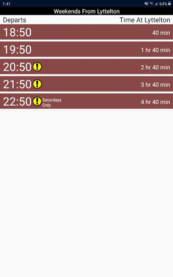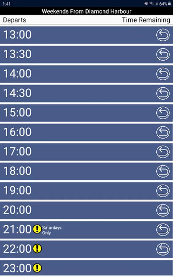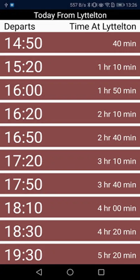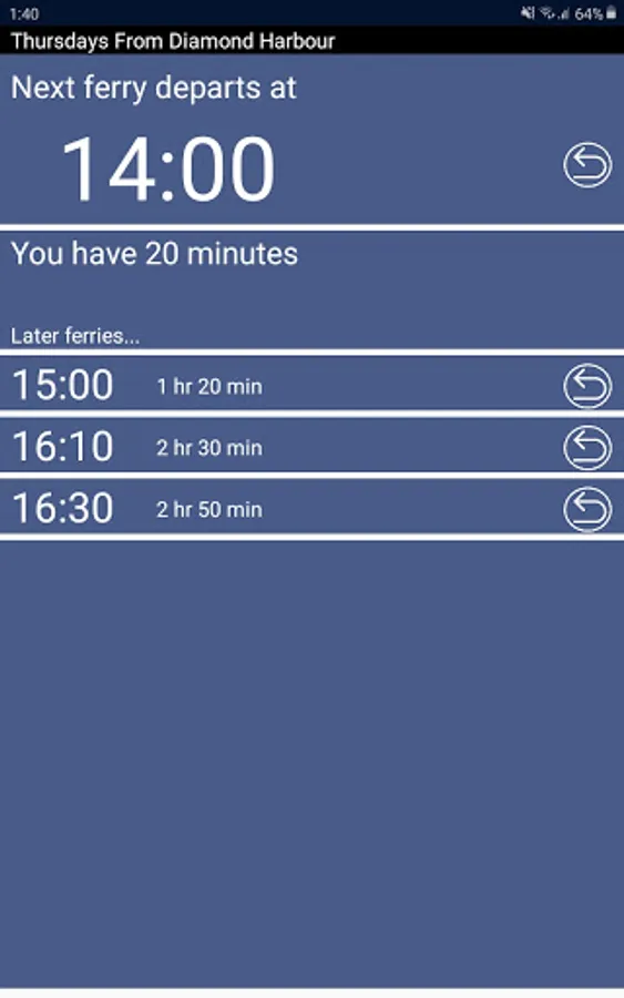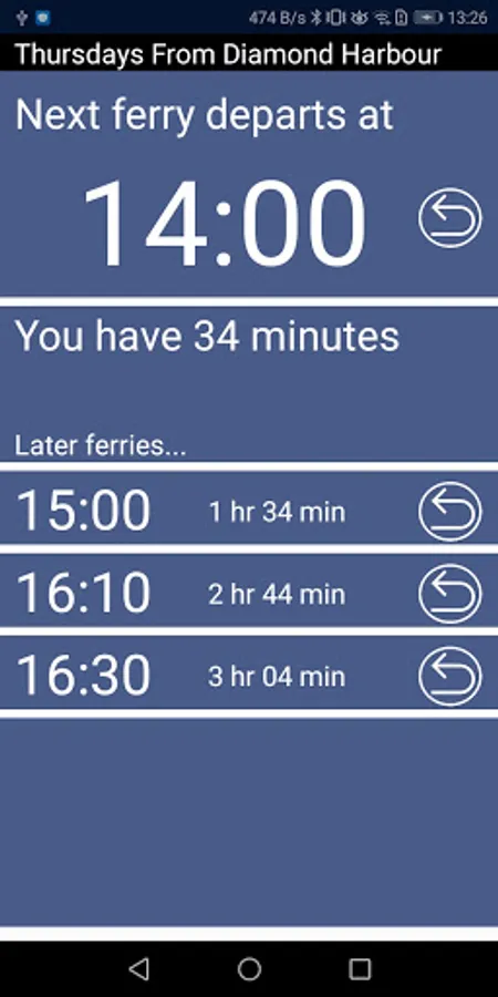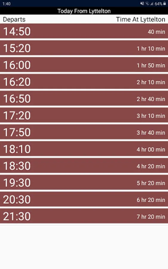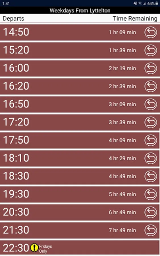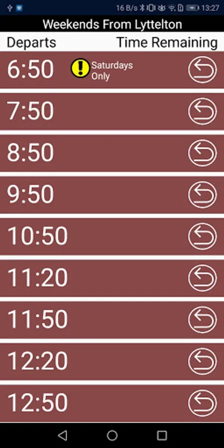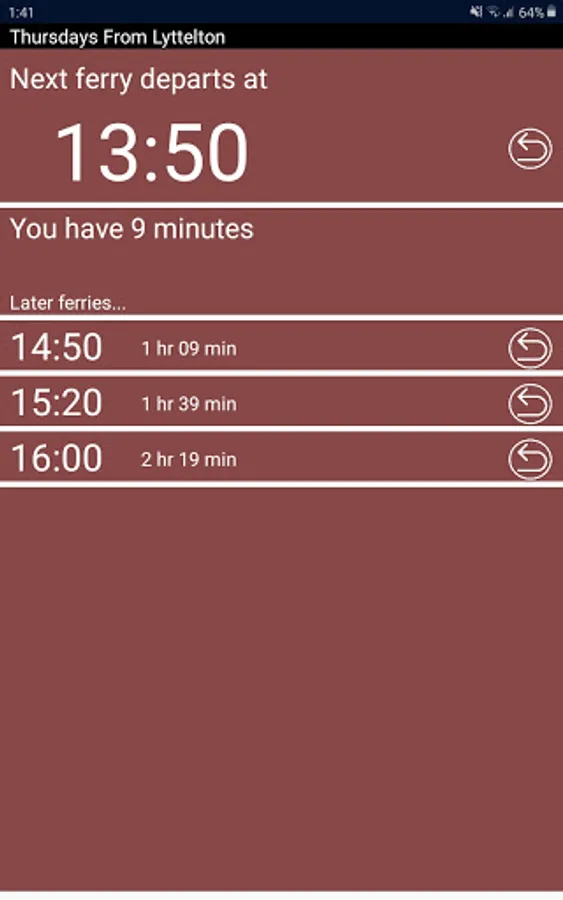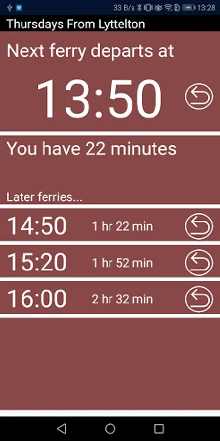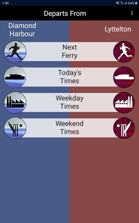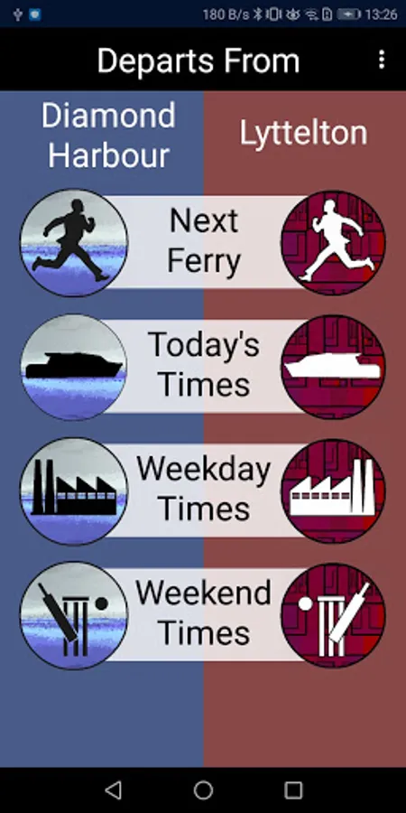 A convenient app to check the next ferry time, or times in the future, either from Diamond Harbour or Lyttelton. Simply press the button of the man on the left side for Diamond Harbour or on the right for Lyttelton to find the next ferry time. Alternatively you can look at the remaining ferry times for the day or a comprehensive list for the weekdays or weekends. For ease of use blue always to departure times from Diamond Harbour whilst red refers to departure times from Lyttelton. Once you download this app, finding the next ferry time will never have been so easy.