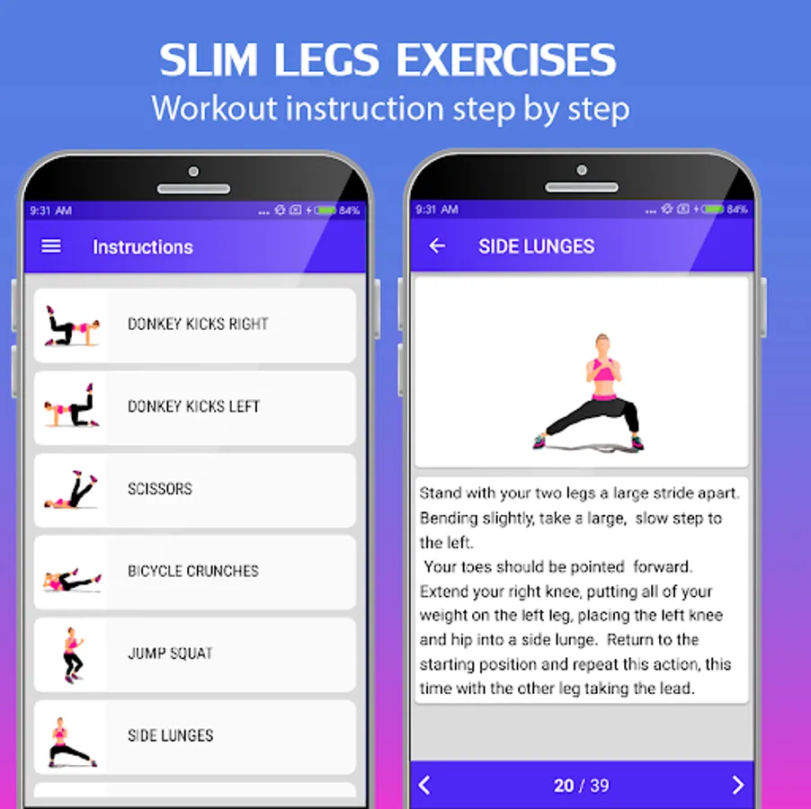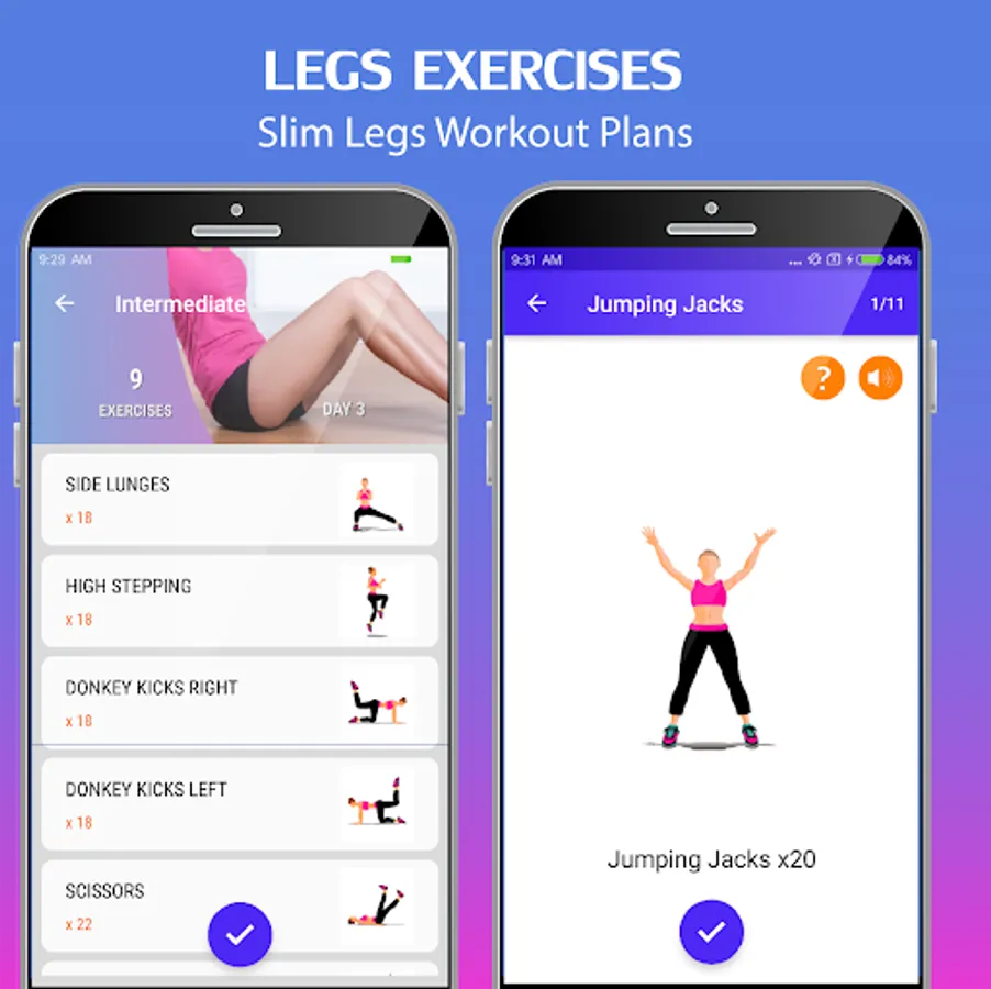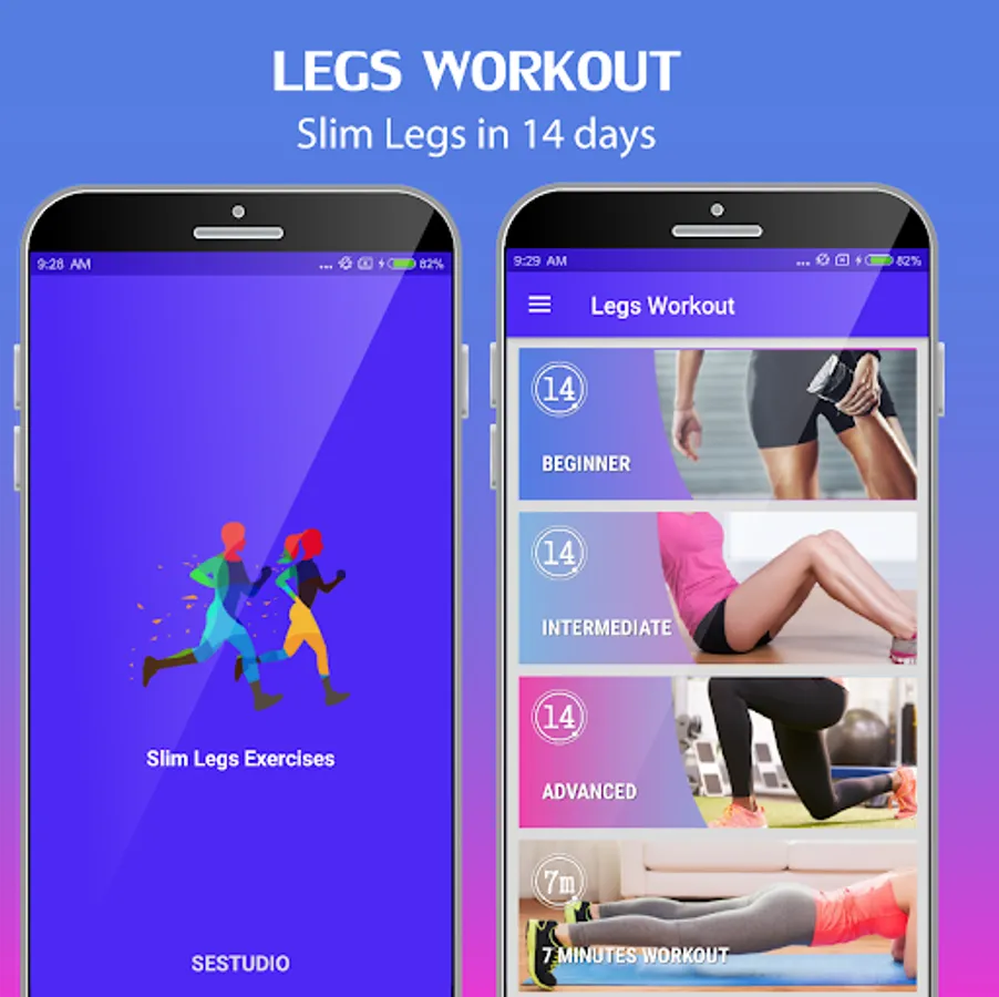 Slim Legs Workout: This app provide workout plans for each level (Beginner, Intermediate, advanced, Seven Minute workout)