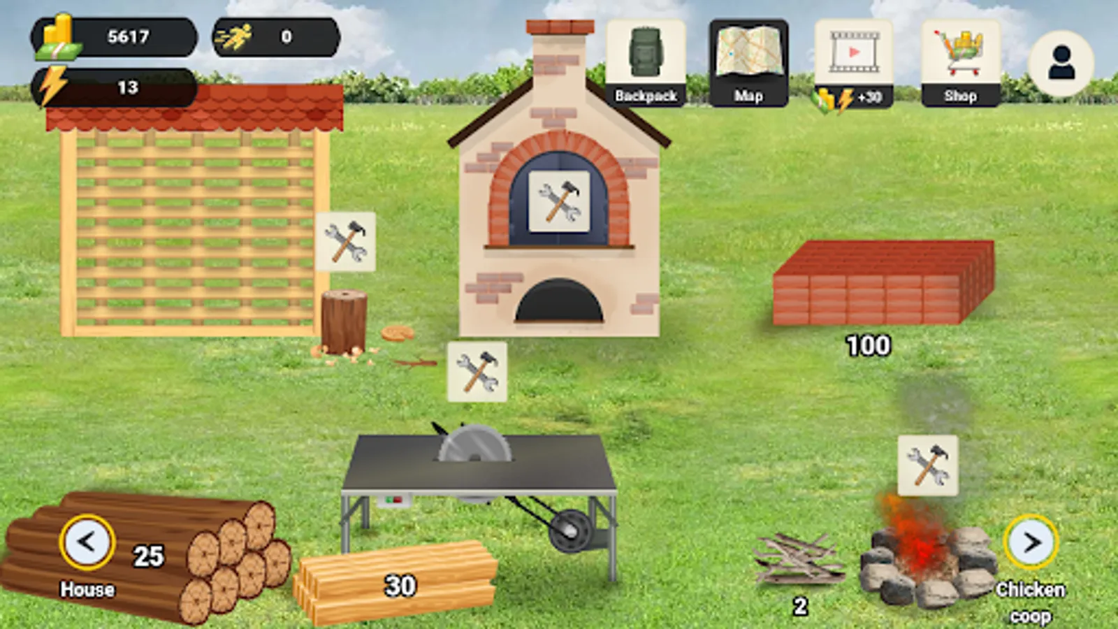 During the game you earn money for completing tasks from the citizens. You can use them to buy tools and building materials needed to construct buildings. Thanks to the possibility to buy seeds, you will develop your farm. After building a house, you can buy equipment for it or change it according to your preferences.