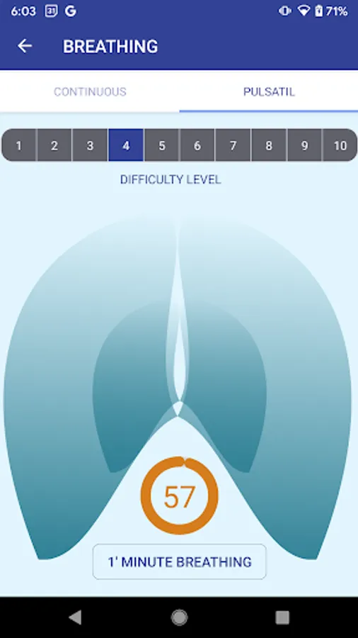 * THE BREATHING SECTION: The breathing exercises intend to train the depth of your breathing. Conscious and profound breathing patterns may enable you to influence specific moods and emotional states.
