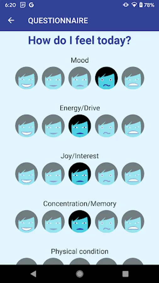 Take just a few minutes every day to document your individual parameters like mood, energy, appetite, sleep, etc. in a questionnaire. We recommend two entries per day: One right after waking up and one just before going to bed. You may soon be able to identify possible triggers of an altered mood and develop counter-strategies.