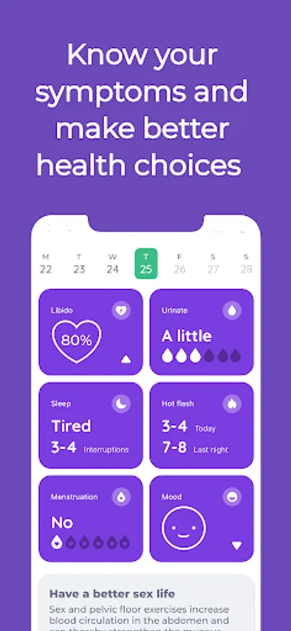 Femilog® is your trusted ally for tackling menopause symptoms head-on. Register a wide range of symptoms, including hot flashes, mood swings, sleep patterns, intimacy levels, urge to urinate, and menstruation. With Femilog®, you'll achieve a broader and clearer picture of your menopause health like never before! Femilog® is your trusted ally! Our intuitive app features allow you to monitor your symptoms' patterns, helping you identify triggers and measure your progress over time.