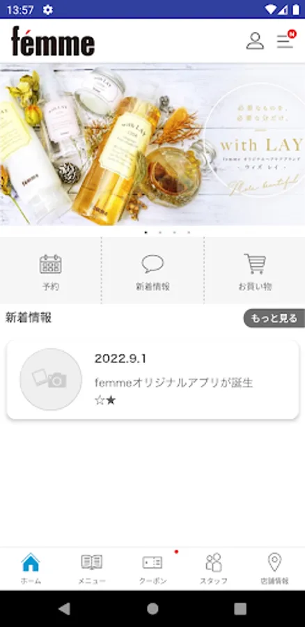 You can receive femme's latest information and deals in real time through the app.