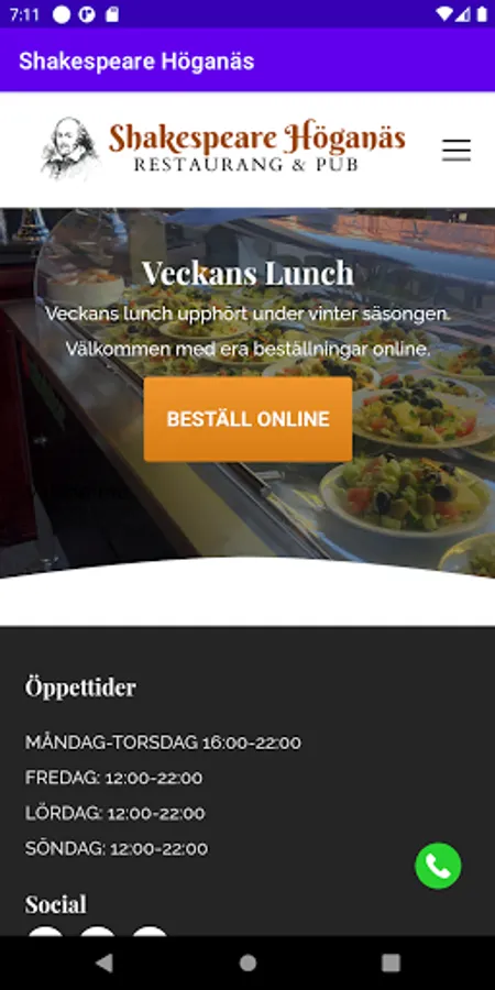 Shakespeare Höganäs is a local pub restaurant located in Höganäs with 44 indoor seats and a large outdoor terrace. In our app you can order our food, book a table, check out our menu and this week's lunch. You can also call us directly on the app and start directions to the restaurant.