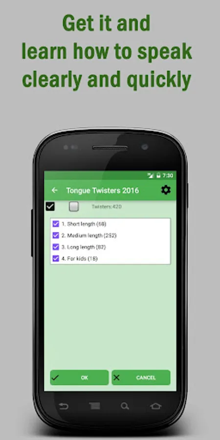 Learn English in a fun way with the Tongue twister app, and improve your pronunciation.